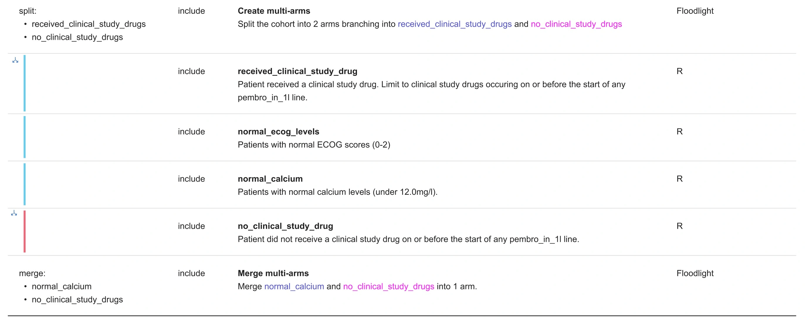 More and more projects relied on multi-arm cohorts, where nodes could split, have different criteria applied, and merge back. In old cohort select, an engineer was responsible for creating all nodes, then going back and deciding how they tied back to each other. This was not readable to anyone else.