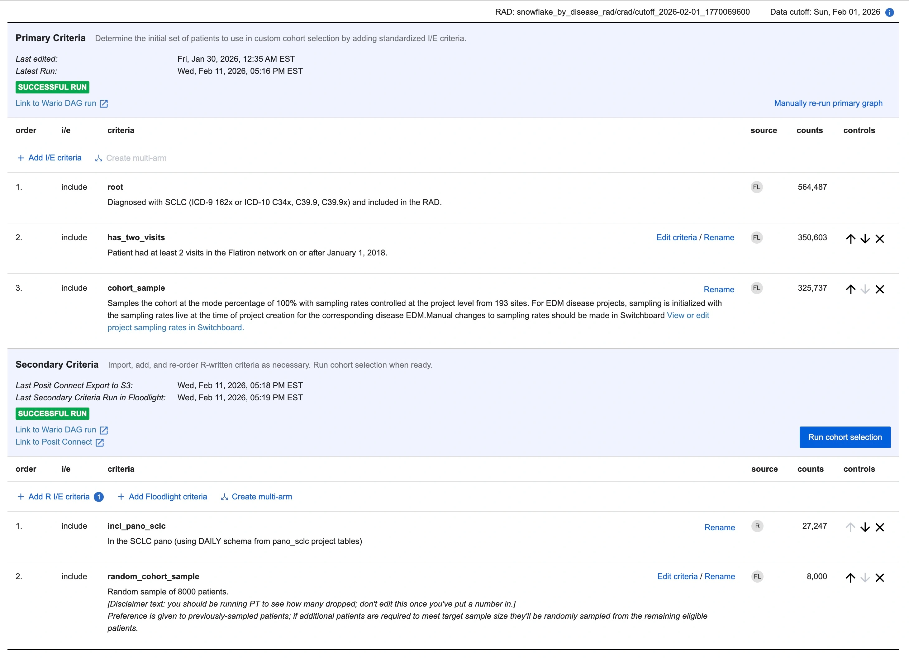 Projects begin in a scoping phase, where a research scientist (RS) builds out the filtering steps to get to the final cohort of interest. They work off their own snapshot of the patient db + their own templated and custom R code. The actual delivery pipelines have to be configured in Python by an engineer on a slightly different database who recreates the scoping work to the best of their ability. Cohort selection had to happen twice and then RS and engineers have to align and understand why patient counts & individuals may not be the same. Projects would block off two weeks for cohort alignment before kicking off in earnest.
