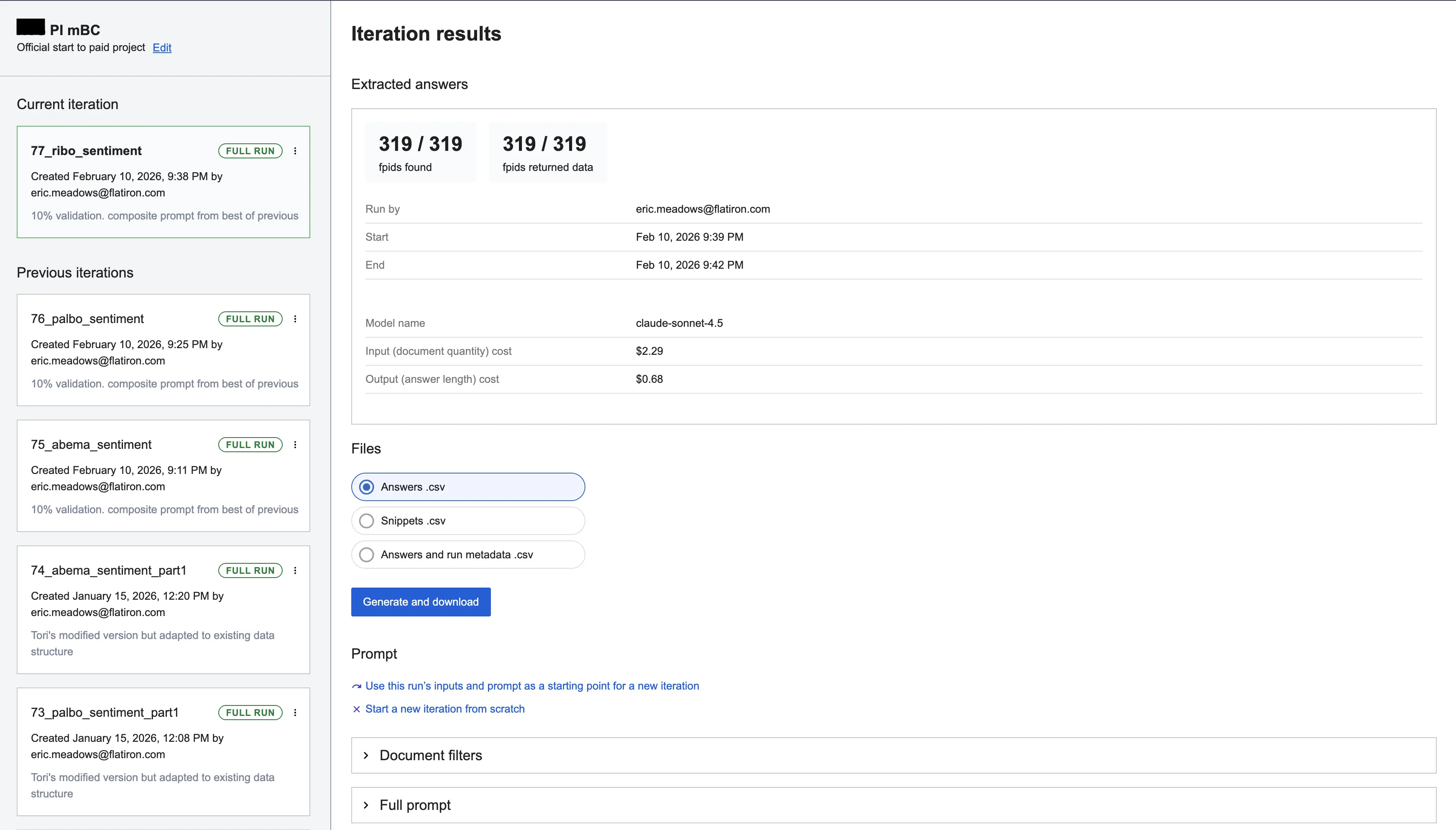 I designed PCE to be "open by default." Users can view, copy, and learn from any existing work. Every action is timestamped and authored, creating an audit trail. This transformed extraction into a collaborative platform where users learn from one another’s prompt strategies.